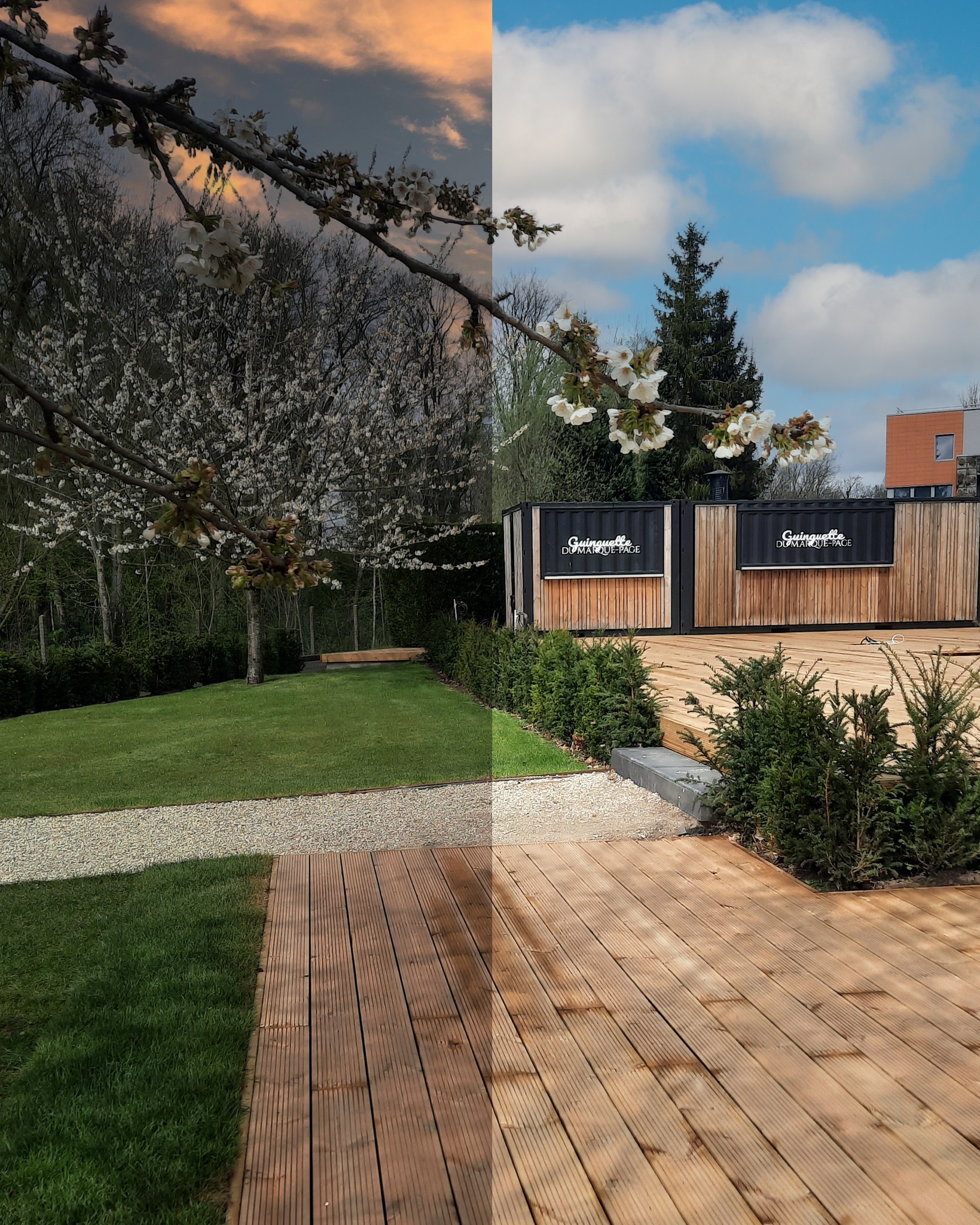 Le Marque-Page Restaurant & Guinguette est un restaurant proposant une cuisine de qualité, situé à Marcq-en-Baroeul (59). L’établissement a la particularité d’avoir une double identité : le restaurant en intérieur – classe et lounge – et sa guinguette en extérieur – chill et fun. Ce fut un vrai plaisir de jouer avec ces deux ambiances !